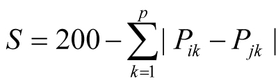 j. This provides a scale of similarity from 0-200 where 200 is perfect similarity